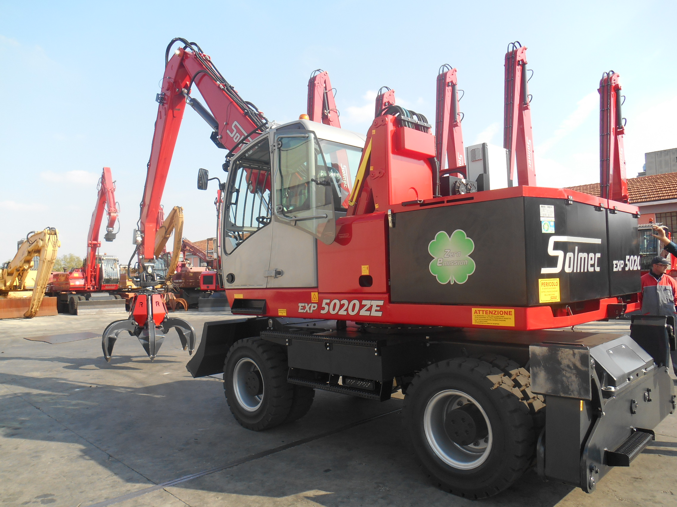 Al in 2009 introduceerde Solmec de volledig elektrische EXP50ZE, de eerste elektrische overslagmachine die zonder kabel, op een volle accu 8 uur kon werken. Op basis van de ervaringen met deze machine introduceert Solmec nu een grotere versie, namelijk de EXP5020ZE. Deze machine weegt 24 ton en levert dus een veel grotere capaciteit dan de kleinere EXP50ZE. Met een verwisselbaar accu-pakket kan meer dan 8 uur gewerkt worden op één accu-lading, mede door de toepassing van enkele slimme energiebesparende technieken, dus blijft de machine 8 uur mobiel zonder dat een kabel aangesloten hoeft te worden, indien geleverd met 2 accu-pakketten kan de machine zelfs continue draaien! Doordat de accu als contragewicht werkt en de doordachte onderwagen, is de machine verrassend stabiel, zelf wanneer blad en/of stempels niet gebruikt worden. Uiteraard is de machine leverbaar met diverse gieken voor diverse toepassingen. Doordat uitsluitend een accu gebruikt wordt, voldoet de machine aan de allerhoogste emissienormen (ZE staat voor Zero Emission) en heeft hij een zeer lage operationele kosten, zowel qua verbruik als qua onderhoud aanzienlijk goedkoper dan machines voorzien van een diesel-motor, daarbij blijkt de machine uit de eerste test door Nederlandse klanten ook verrassend snel. Klik HIER voor de video